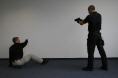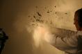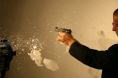 | High speed camera sequenz: Lizard is shooting a weapon out of the hand from another Cirocom team member. This was a real life fire shoot. | High speed camera sequenz: Lizard is shooting a weapon out of the hand from another Cirocom team member. This was a real life fire shoot. | High speed camera sequenz: Lizard is shooting a weapon out of the hand from another Cirocom team member. This was a real life fire shoot. | Target weapon after real life fire shoot. |